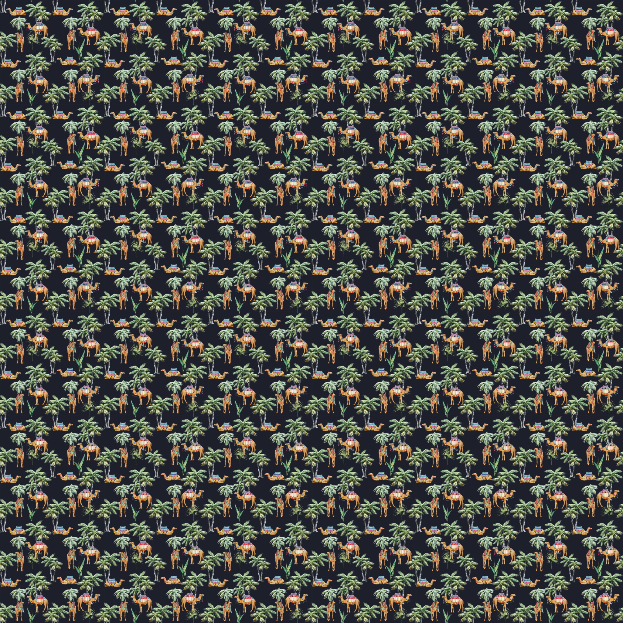 Camel and palm black behang kopen | Wonderwall